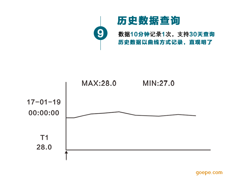 历史数据查询功能,数据每10分钟记录一次,*多支持30天的数据查询。